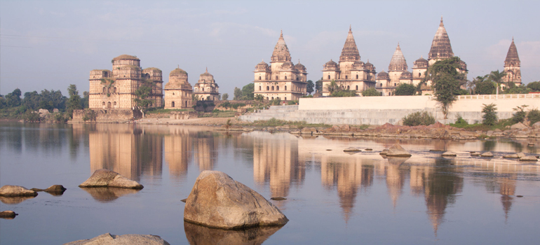 There are fourteen Chatrries or memorials to the rulers of Orchha grouped along the kanchan ghat of the river Betwa.The 14 Chattries were constructed as a mark of respect for the imperial blue blood of the mighty rulers of Bundelkhand dynasty. Build in Indo-Mughal style, these three storey buildings are open to all sides and have nicely designed tops - domes or pinnacles. Most of the cenotaph is in a single compound with similar plans, except the ones seen on the extreme left. This one is build in memory of King Bir Singh Deo(1605-27) whose rule is considered as the golden age of Orchha.